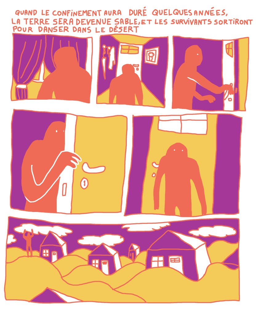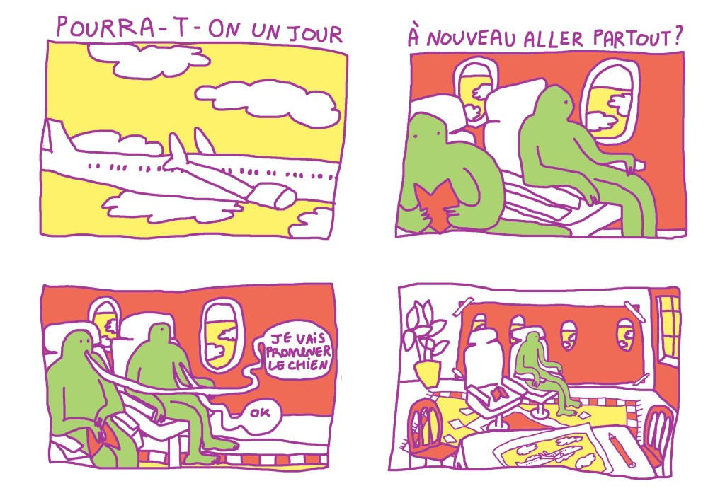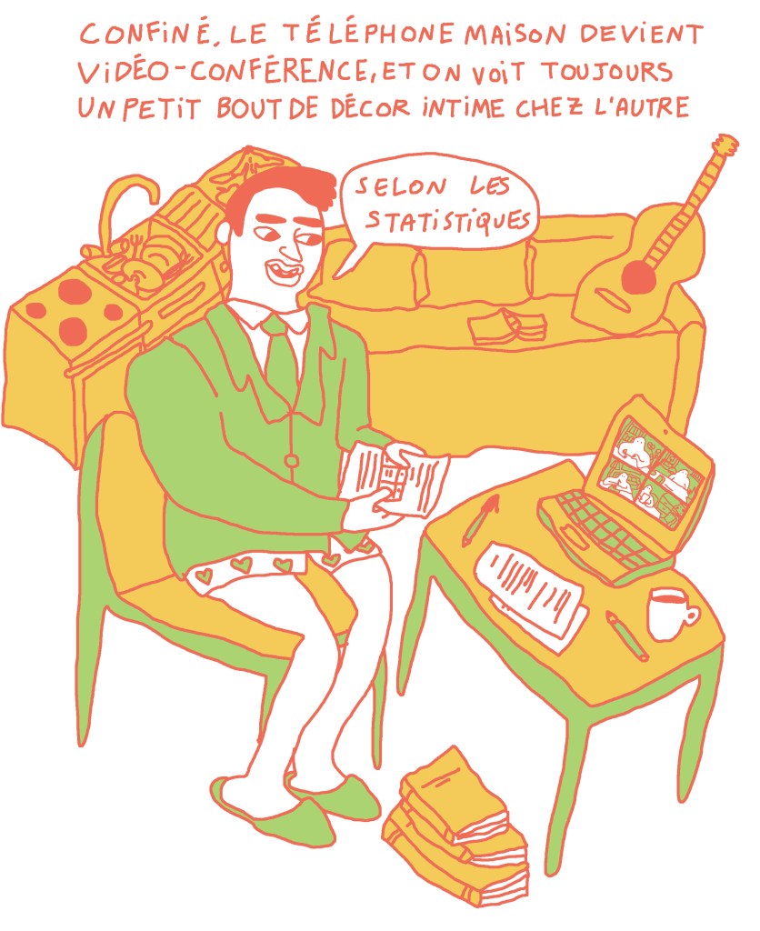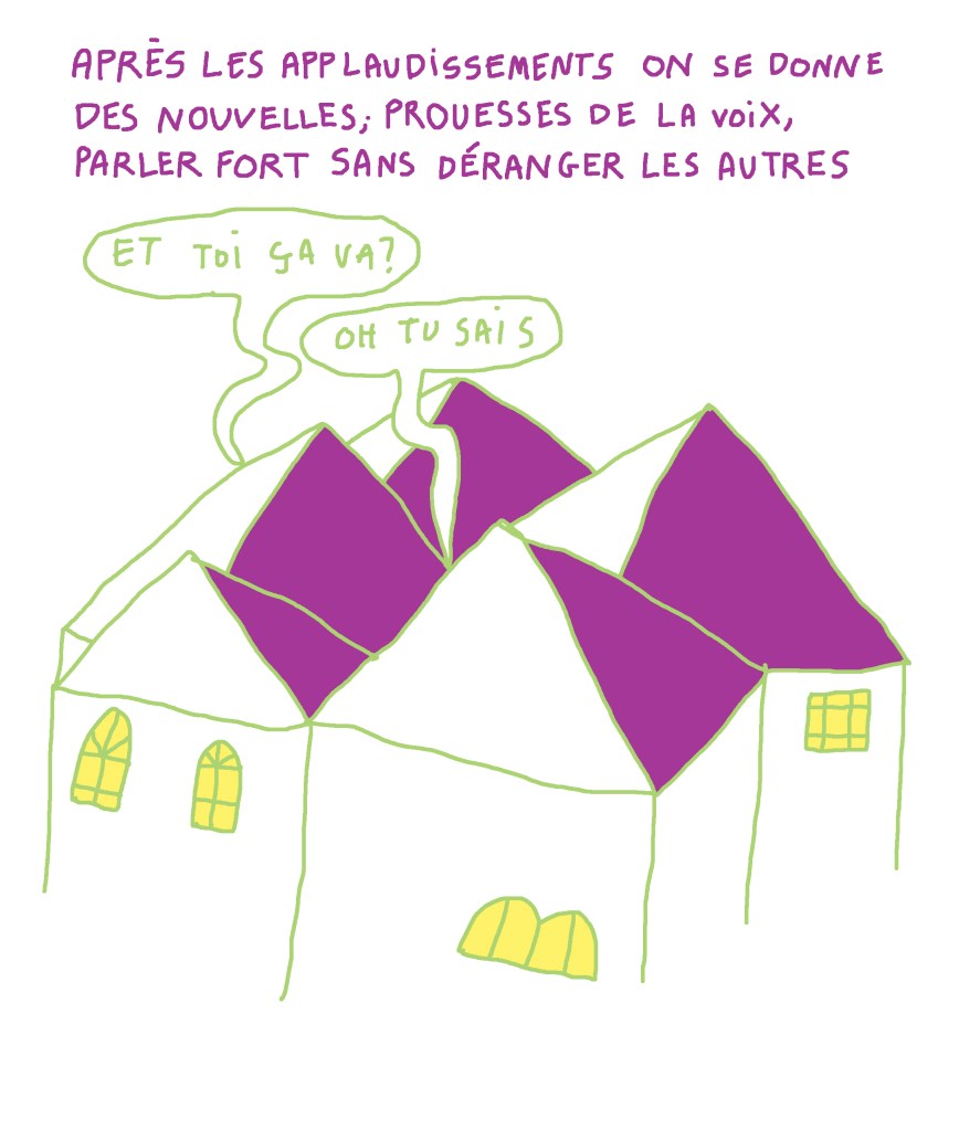 Les amis des amis ont fait part de leurs morts, et dans les familles aussi, les angoisses rythmaient les jours. On riait de bon cœur aux vidéos rigolotes, on faisait du sport au salon et on inventait des recettes de cuisine, on rangeait des photos, on lisait, on écrivait. On restait cloîtré en remplissant prudemment des attestations dérogatoires de sortie pour l’épicerie et les journaux, on ne savait toujours pas grand chose, les tests, les masques, les héros en blouse blanche, les profs internet, les caissières casquées, les couturières solidaires et les avions ambulances militaires. Et les applaudissements de 20h suivis de mini concerts et de petites conférences littéraires au balcon.