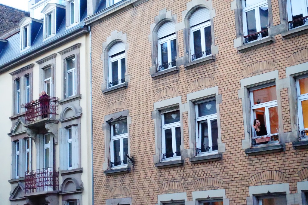 Pendant le confinement du 17 mars au 11 mai 2020 les habitants de la rue Geiler à Strasbourg ont eu peur, ils ont ri, sont allés prudemment à la boulangerie et ont applaudi au balcon.